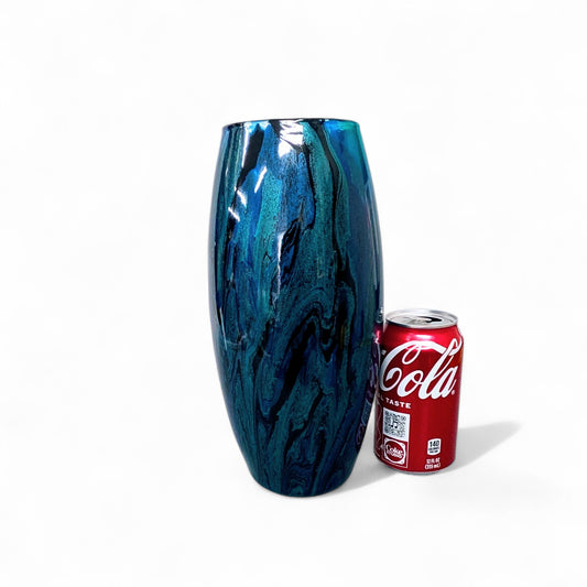 Aqua Teal Turquoise Glass Art Wave Bowl