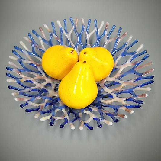 Beach Glass Art Coral Bowl in Aqua and Sapphire Blue