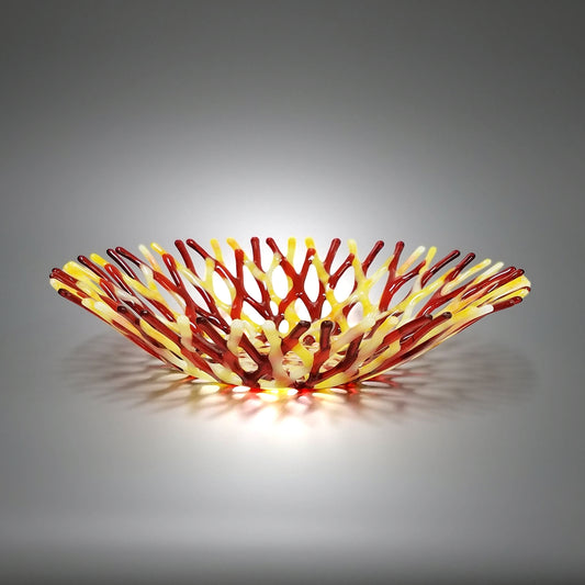 Glass Art Coral Bowl | Glass Sculpture | Beach Themed Table Decor in Pineapple Yellow and Dark Orange |