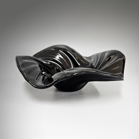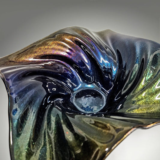 Decorative Wave Bowl in Black Iridescent Oil Slick Glass