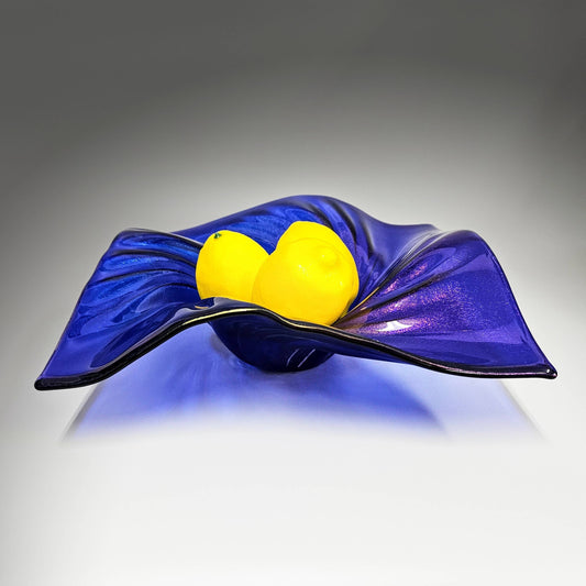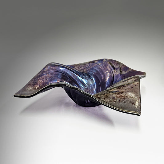 Glass Art Square Wave Bowl Purple Metallic Oil Slick