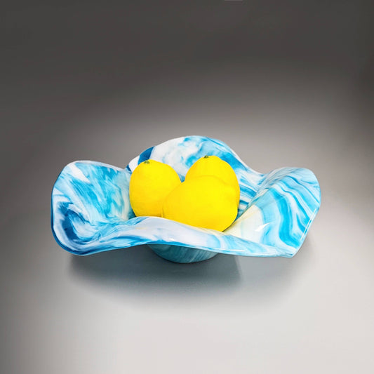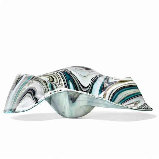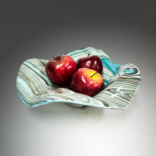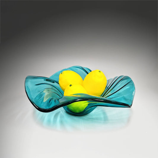 Glass Art Wave Bowl in Cobalt Blue Aqua Green