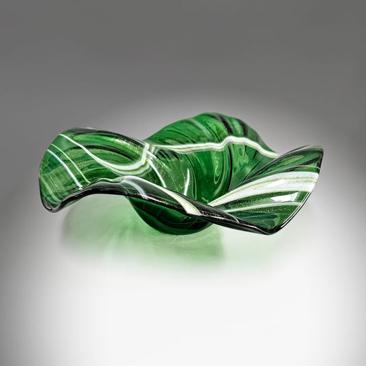 Glass Art Wave Bowl in Kelly Green Aventurine Glass
