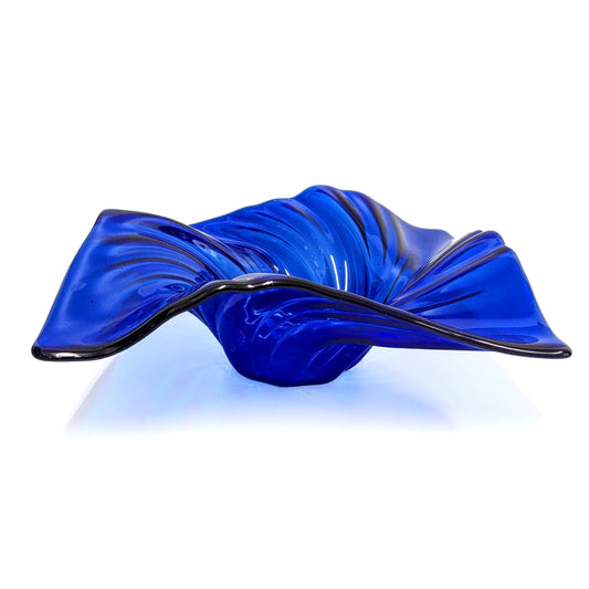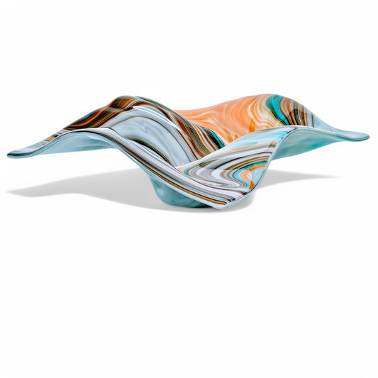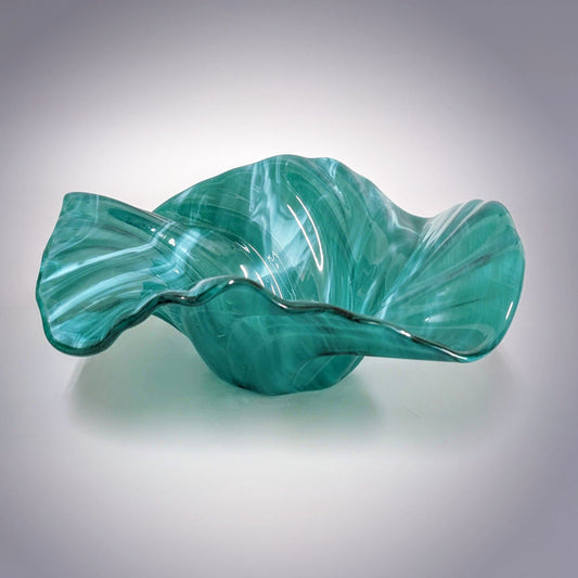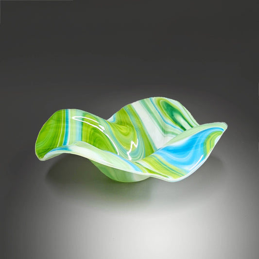 Glass Art Wave Bowl in Aqua Teal Blues and Greens