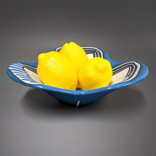 Glass Art Bowl in Deep Turquoise Blue and Off White