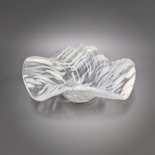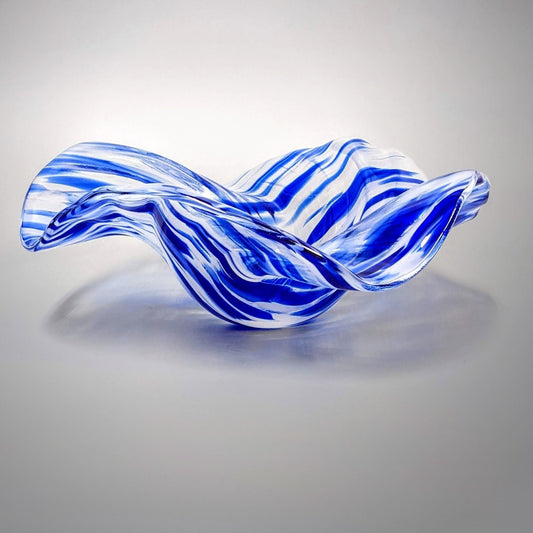 Glass Art Wave Bowl in Aqua Blue Green and White