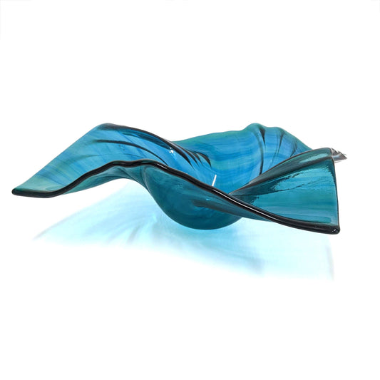 Teal Blue Green Glass Art Wave Bowl