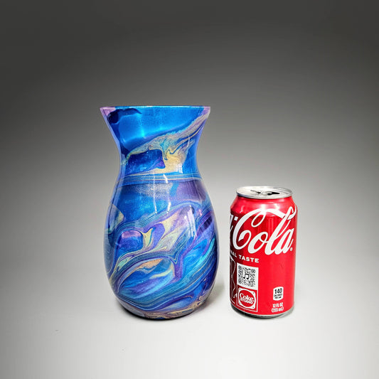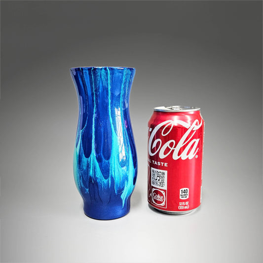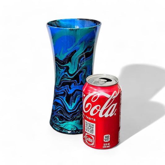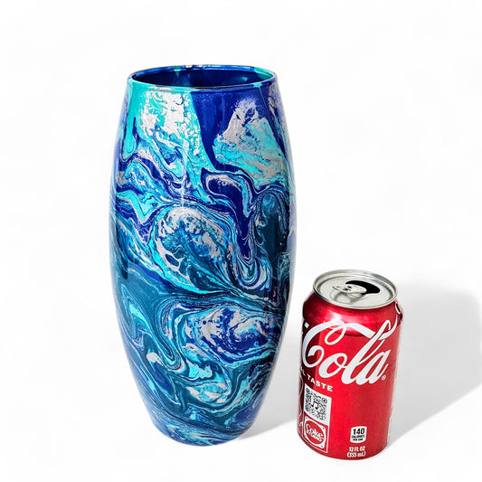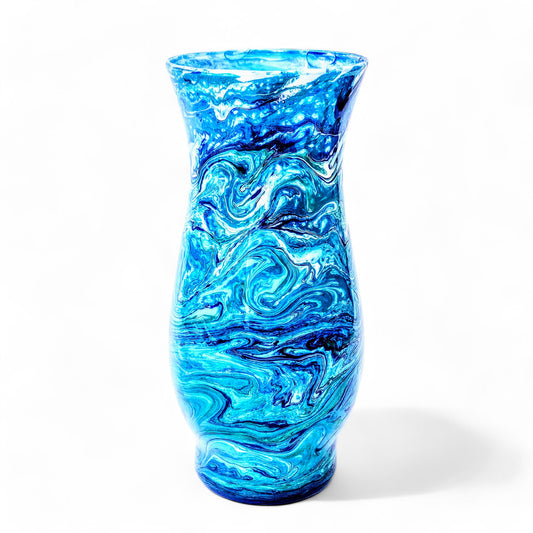 Painted Vase in Teal Blue Green White | Fluid Art Flower Vase