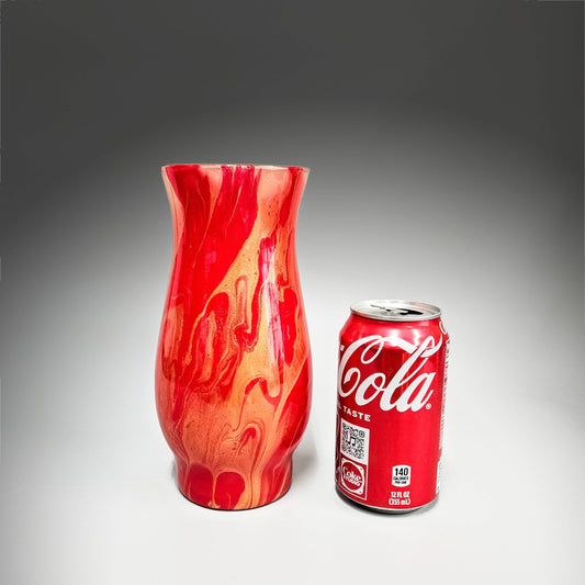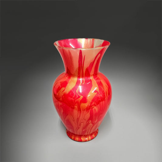 Painted Glass Vase in Red and Metallic Gold