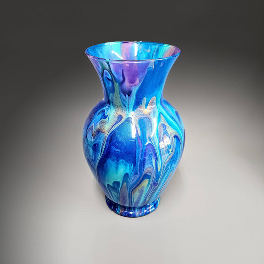 Fluid Art Vase in Aqua Purple Gold