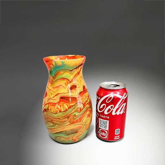 Glass Art Painted Vase in Aqua and Orange