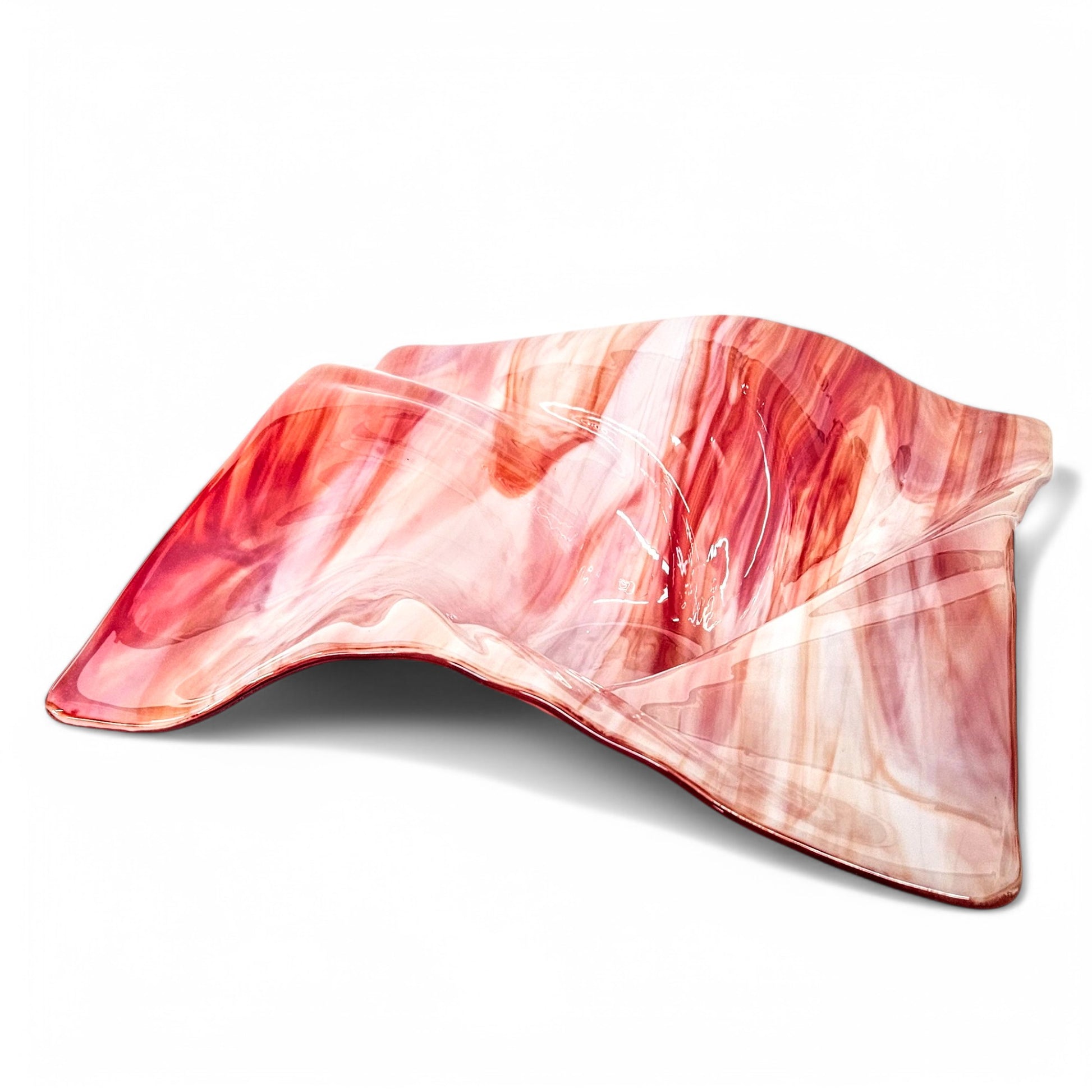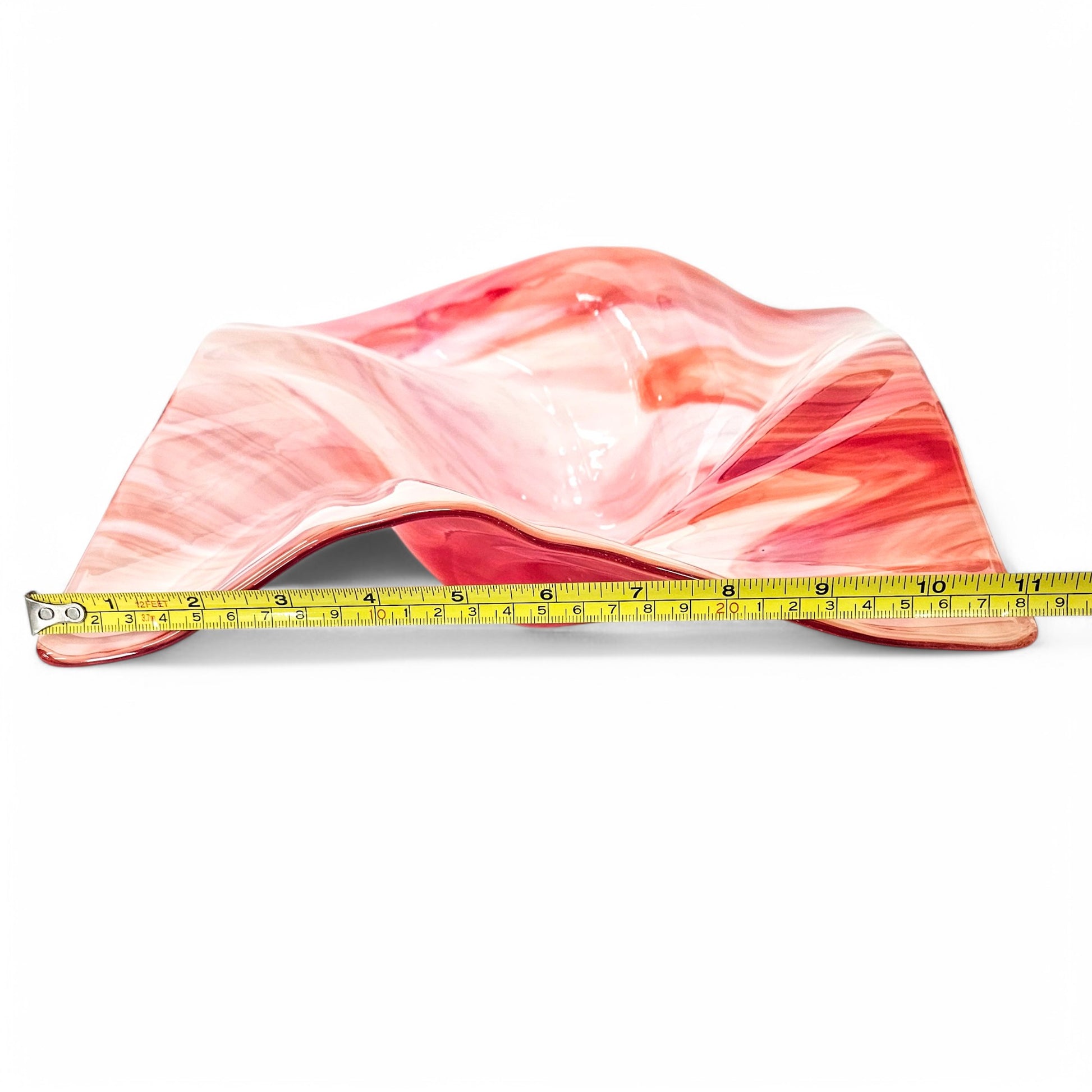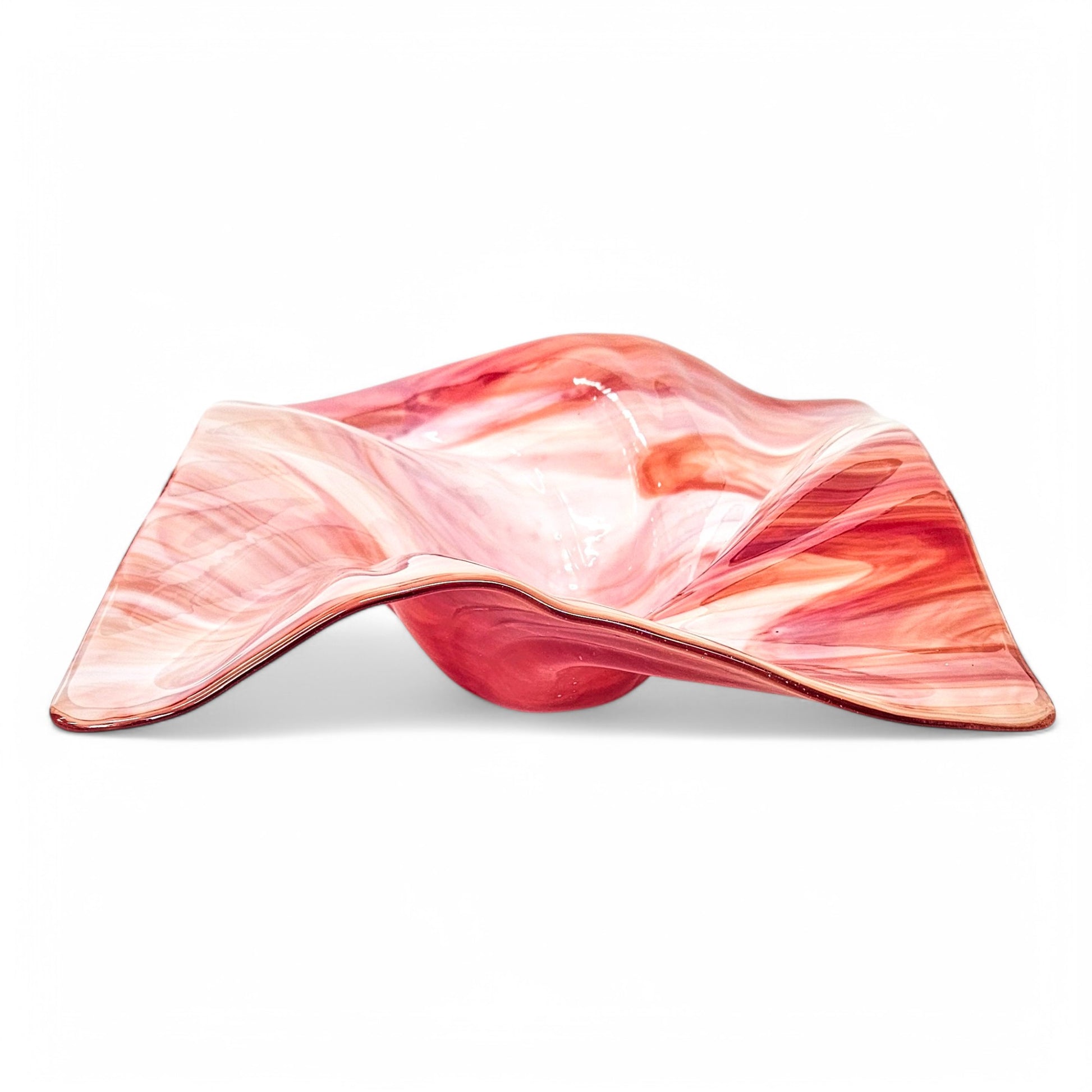 Fire and Ice Glass Art Wave Bowl in Red and White