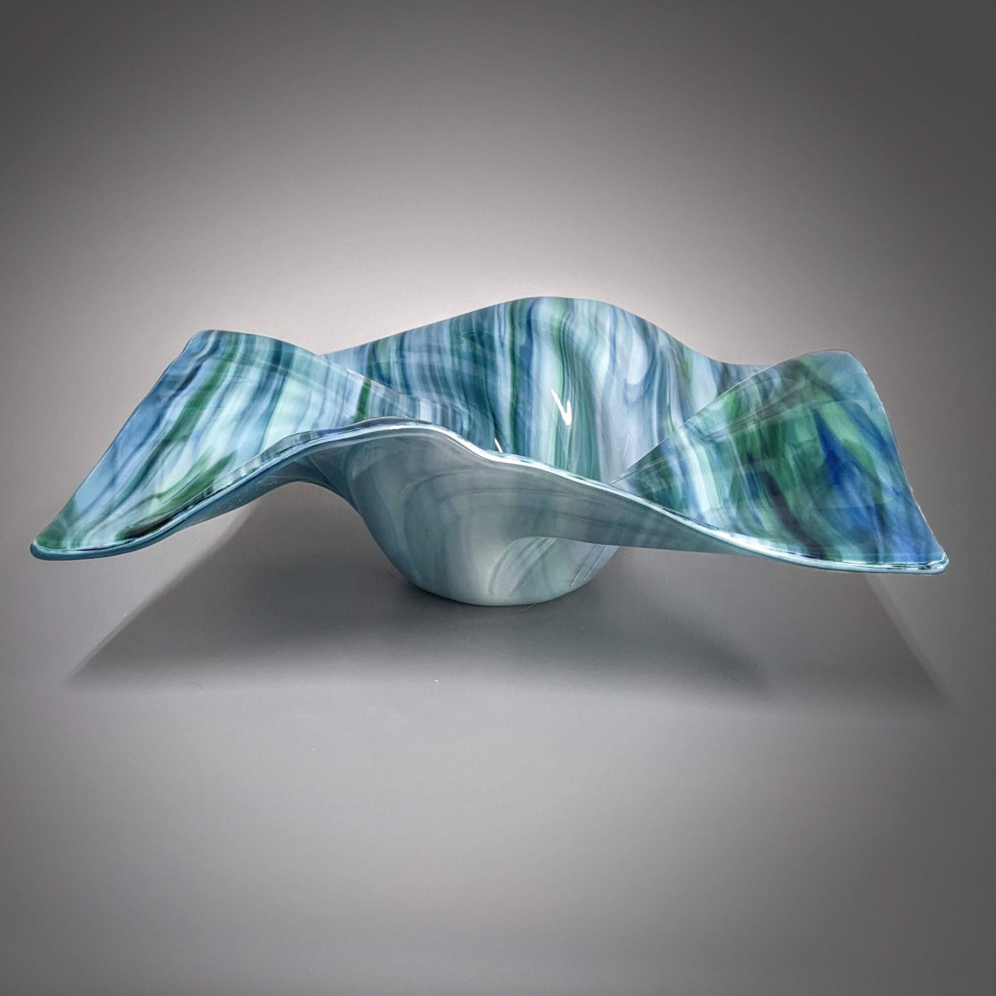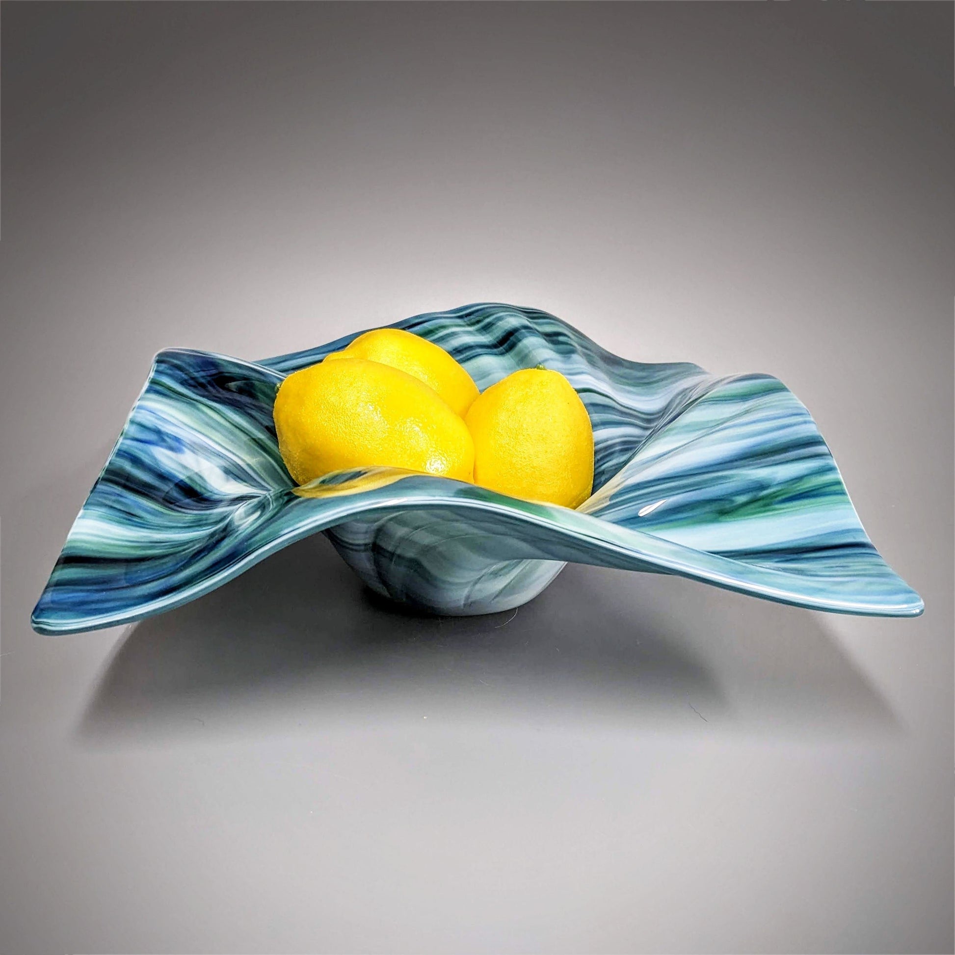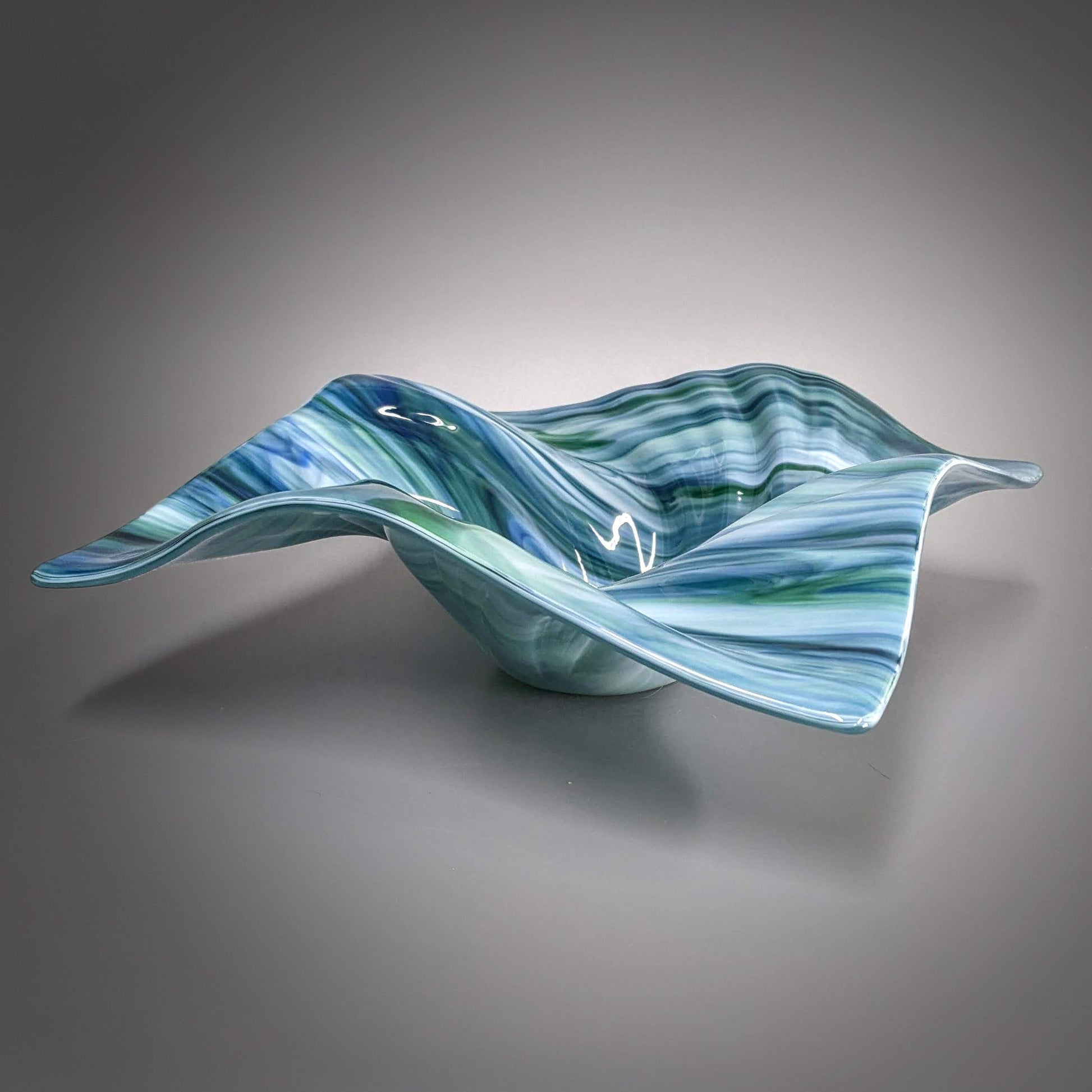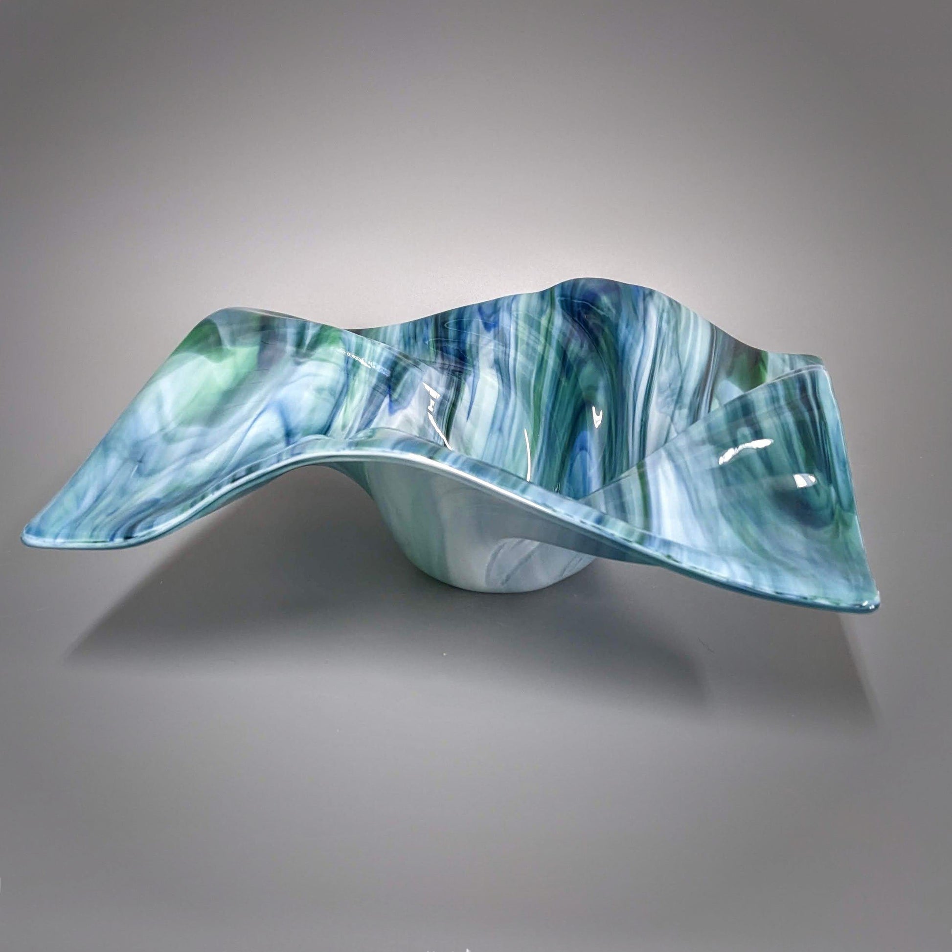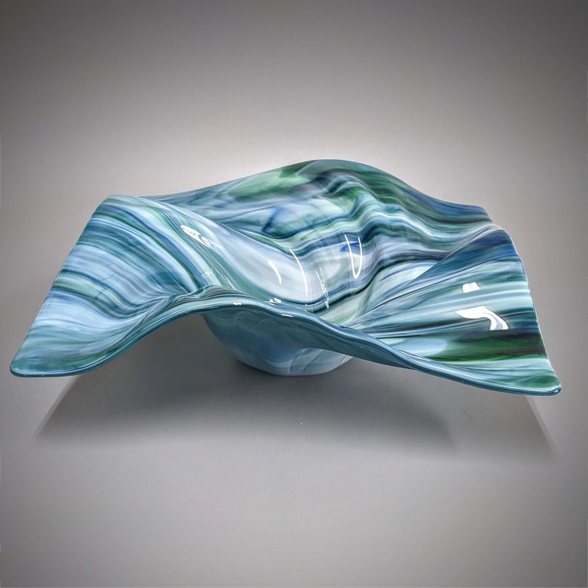 Glass Art Wave Bowl in Aqua Teal Blues and Greens