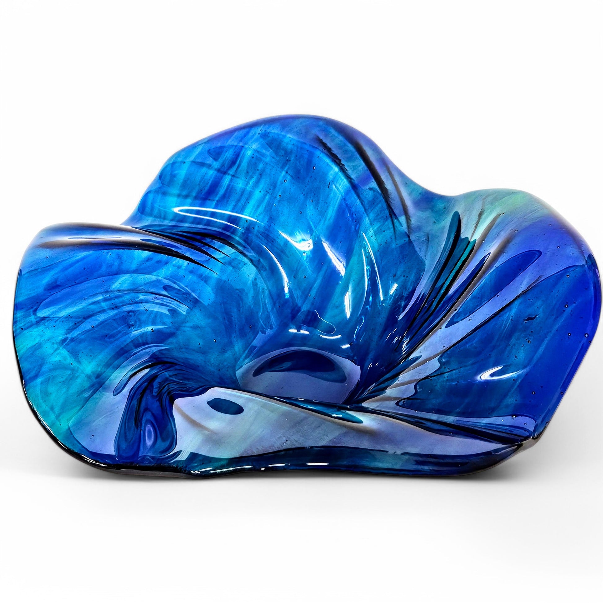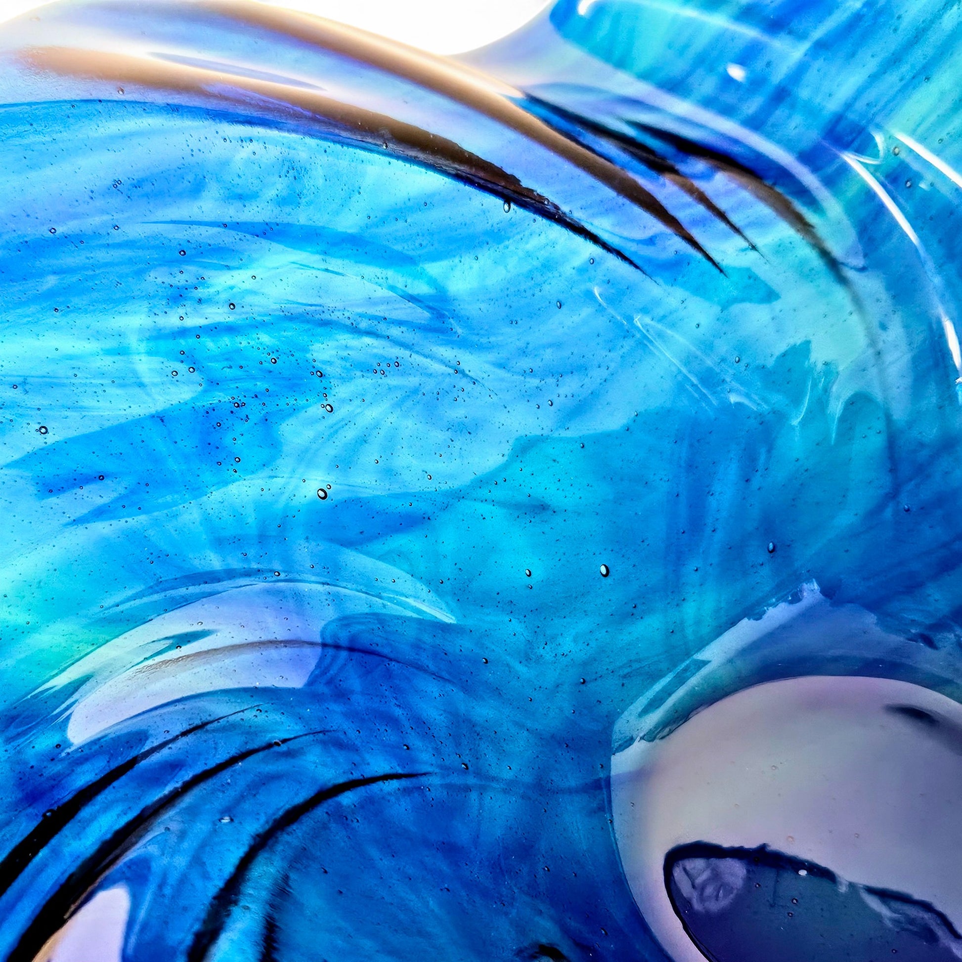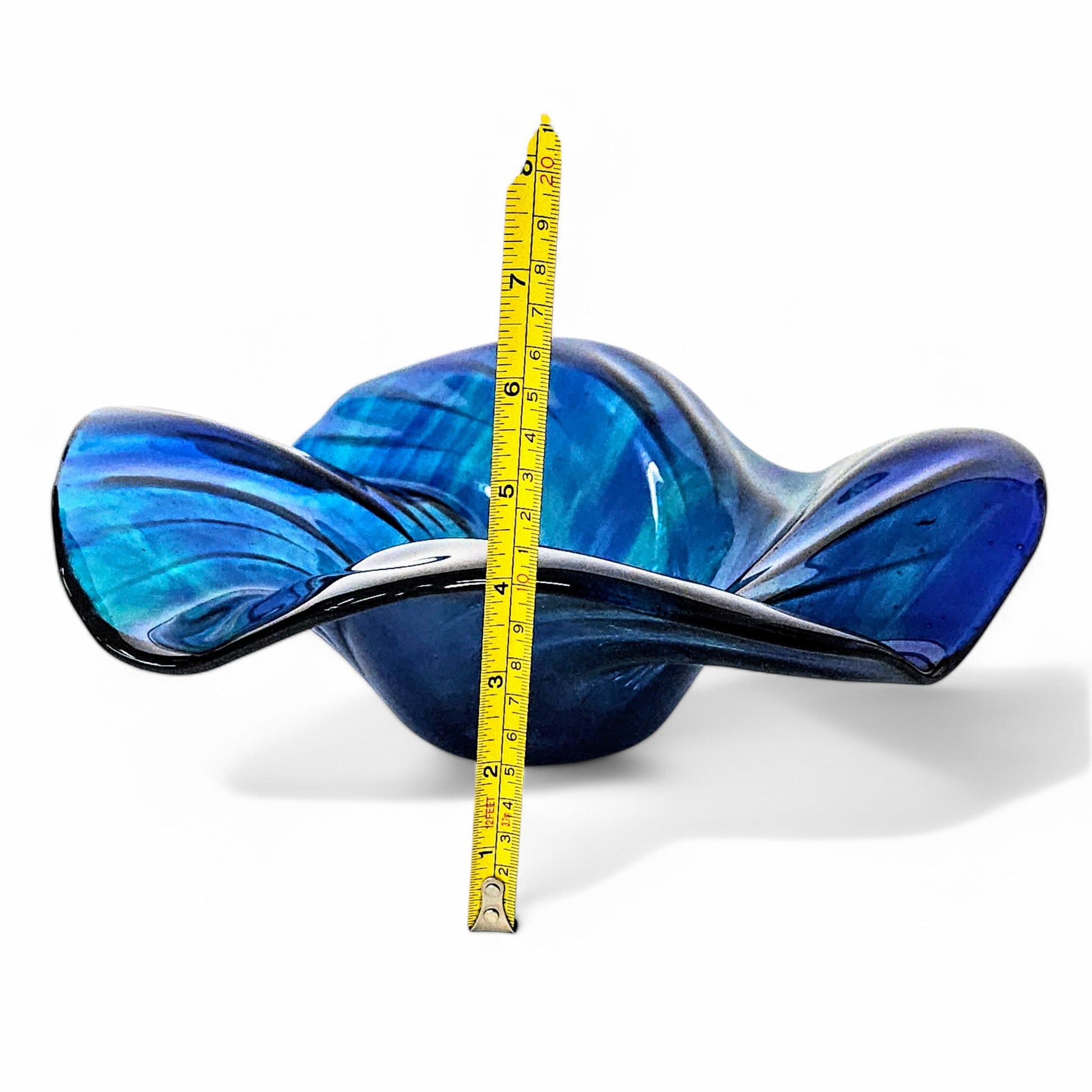 Glass Art Wave Bowl in Aqua Teal Navy Blue