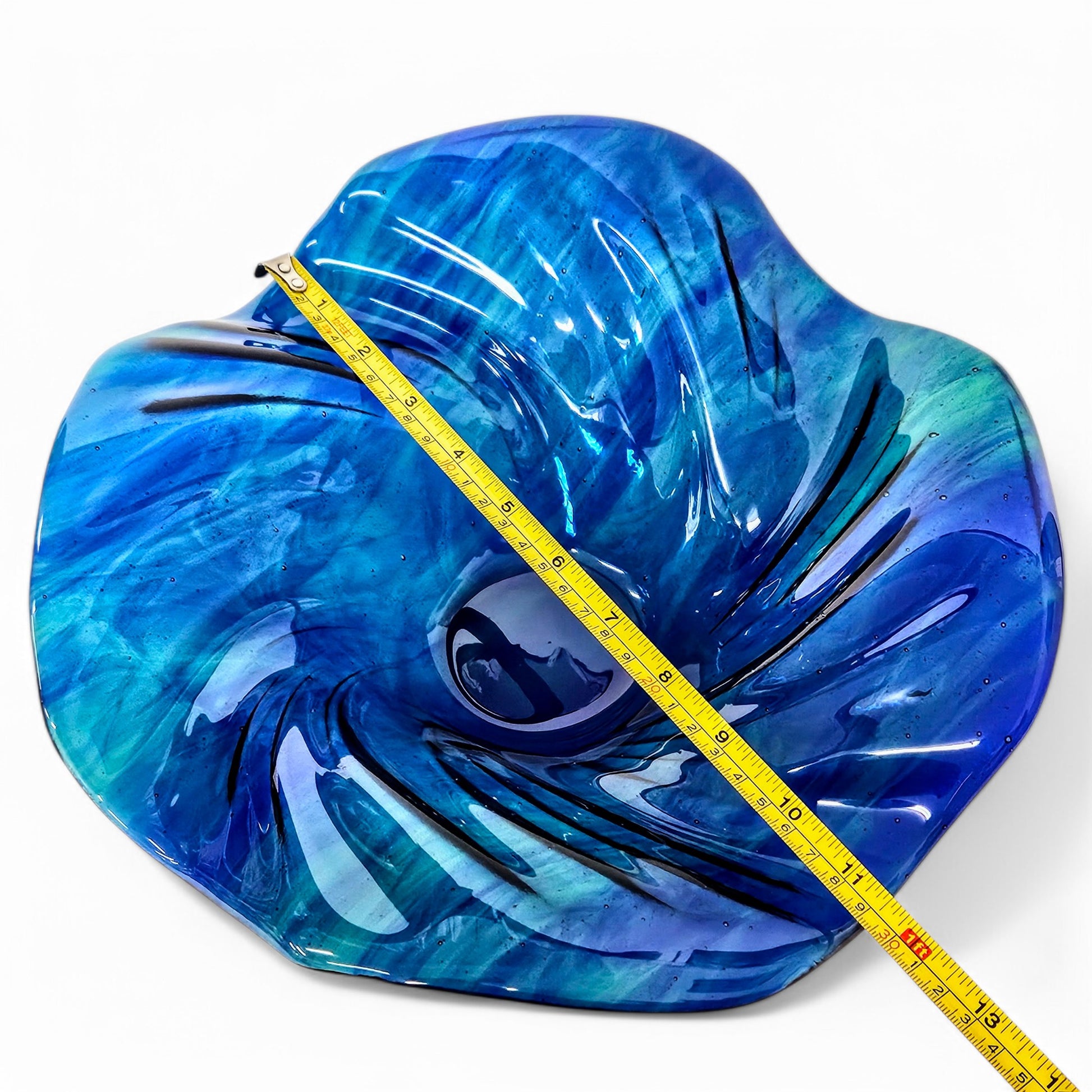SIZE: 11.5" at widest point and 4" at highest point - Note: Glass tends to pull during the melting process. All sizes are approximate to within 1/4" more or less, of listed dimensions.