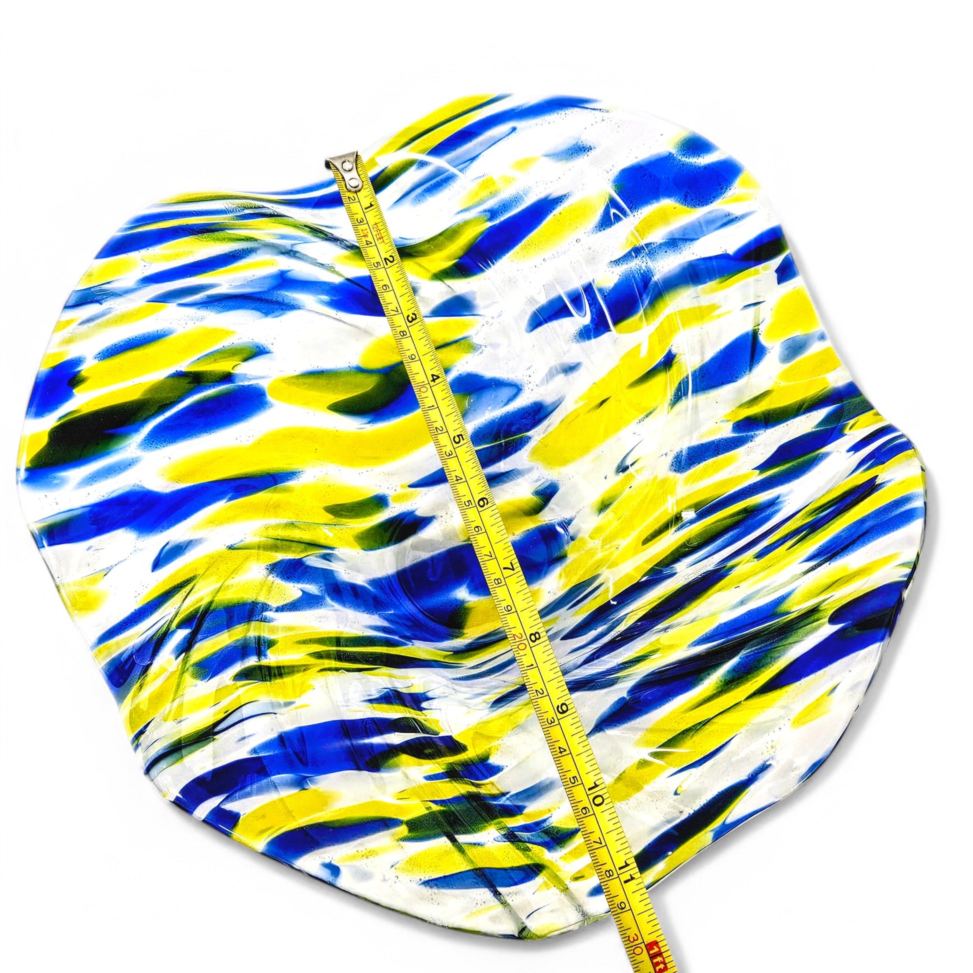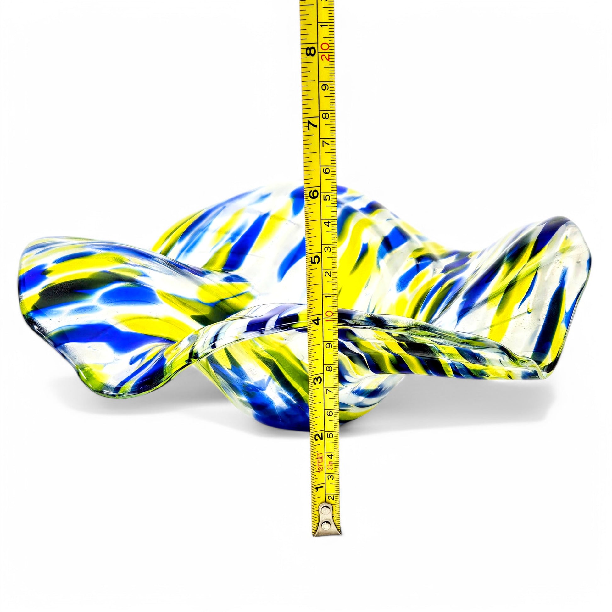 SIZE: 11.5" at widest point and 4" at highest point - Note: Glass tends to pull during the melting process. All sizes are approximate to within 1/4" more or less, of listed dimensions.