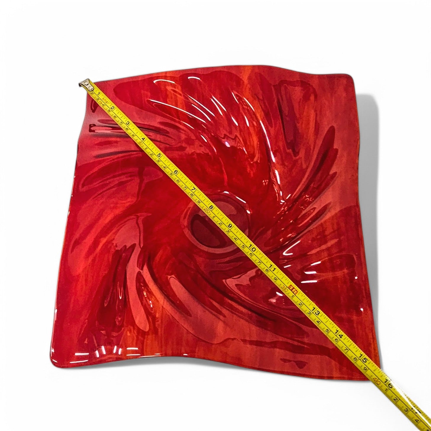 Glass Art Wave Bowl in Orange and Red | Modern Square Decorative Centerpiece Bowls