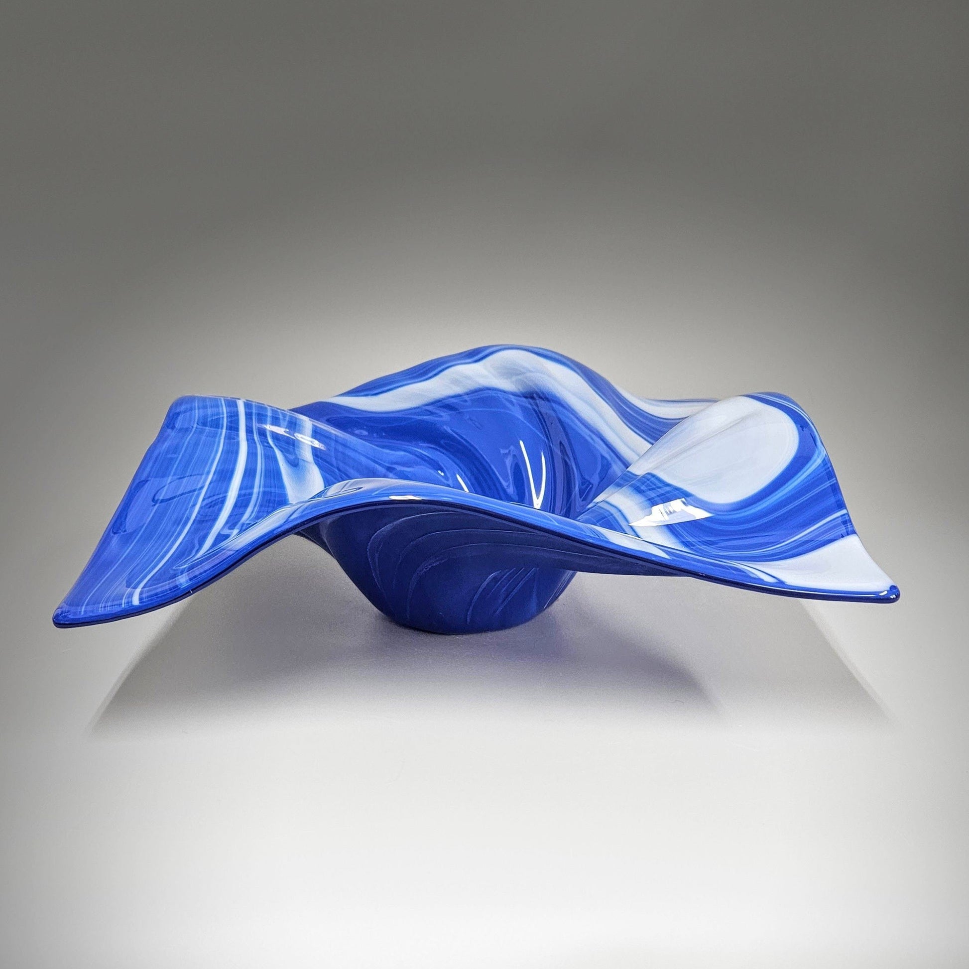 The color scheme of the bowl is primarily blue and white, with subtle variations in tone and shading. The blue is deep and rich, with a glossy finish that contrasts beautifully with the white.