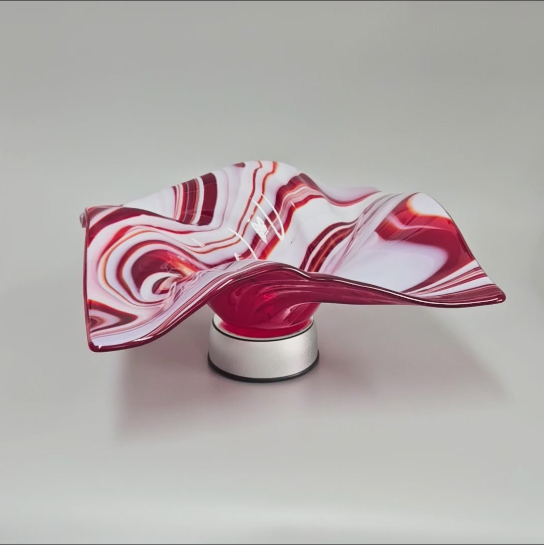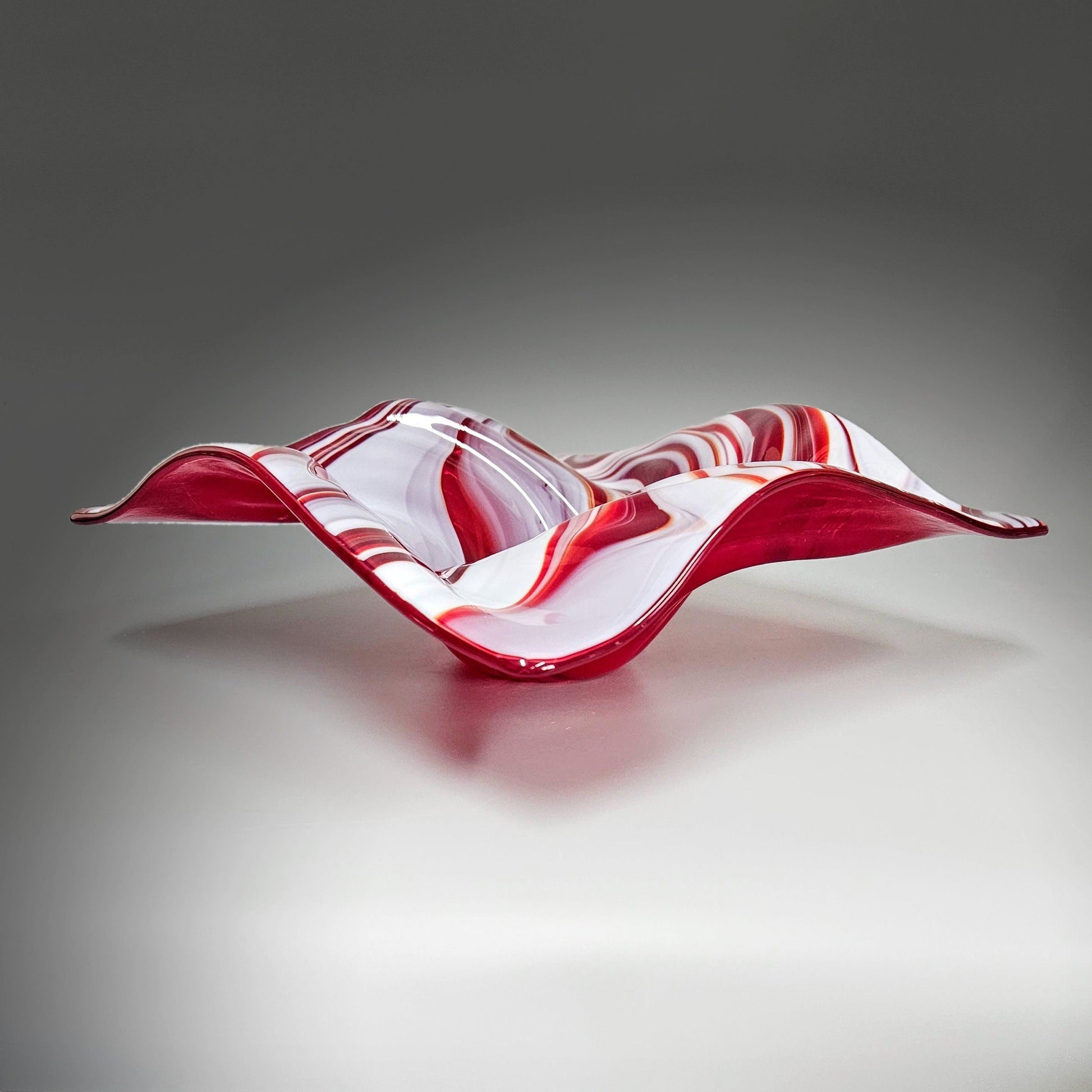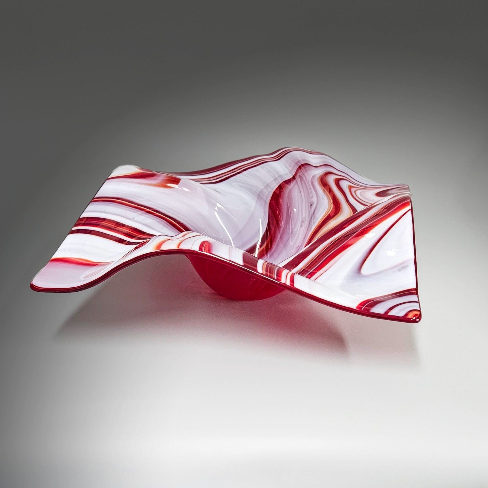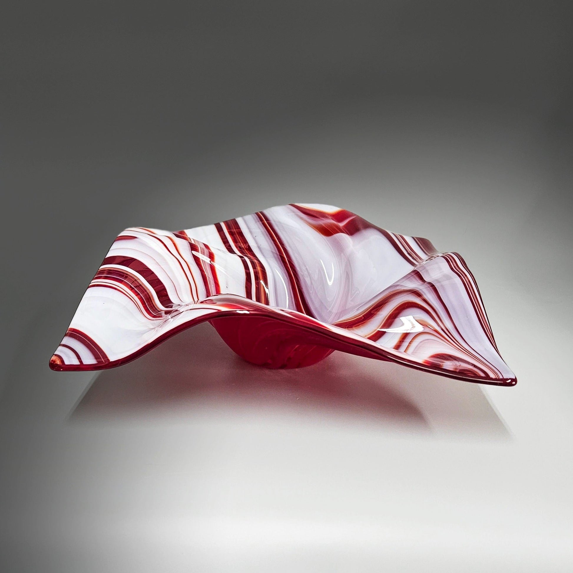 SIZE: Measured diagonally from corner to corner; 16" x 16" and 4" at highest point - Note: Glass tends to pull during the melting process. All sizes are approximate to within 1/4" more or less, of listed dimensions.