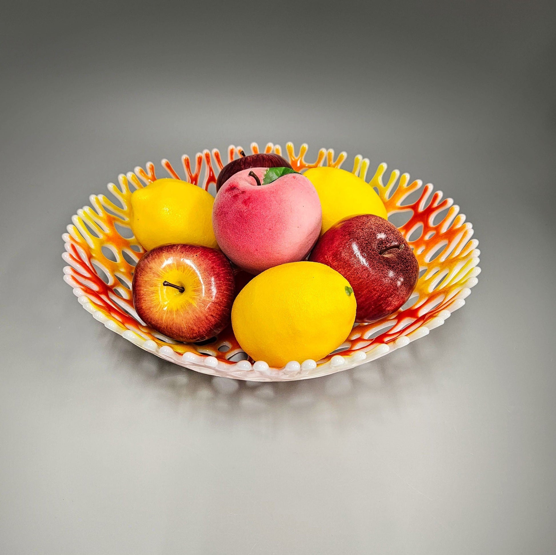 Large Glass Art Fruit Bowl in Red and Yellow | Coral Design
