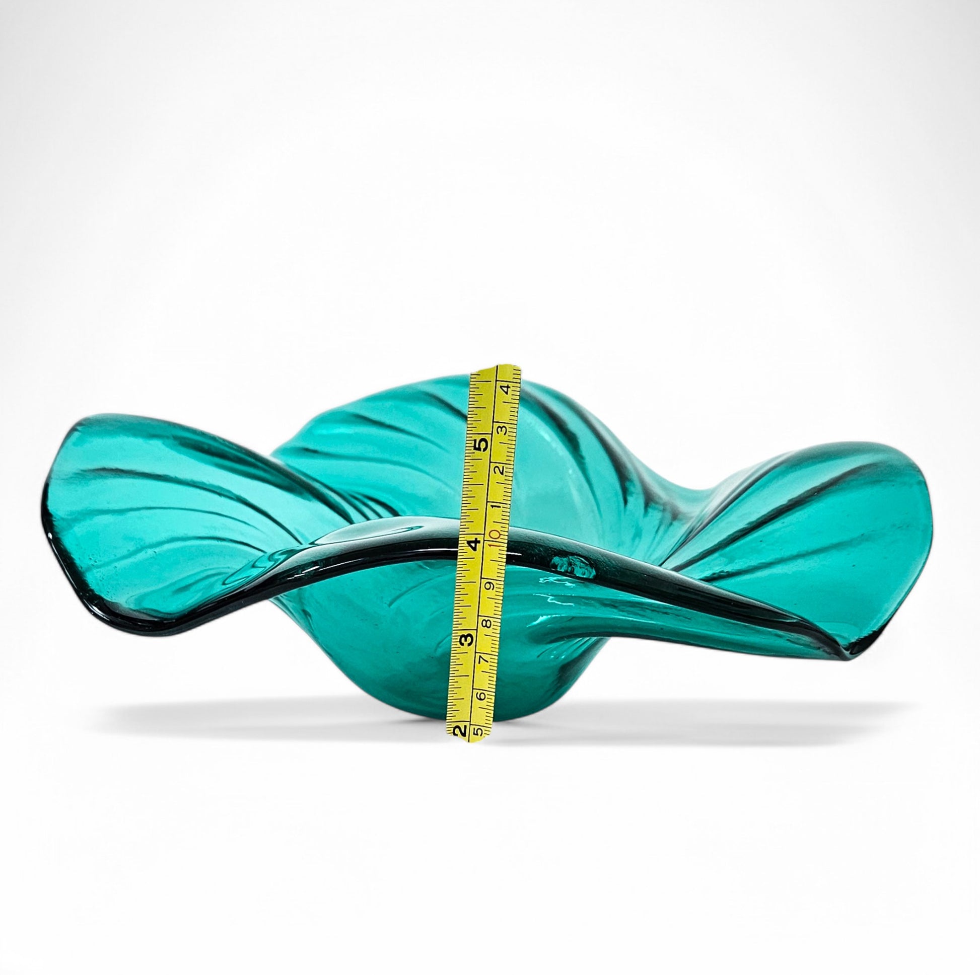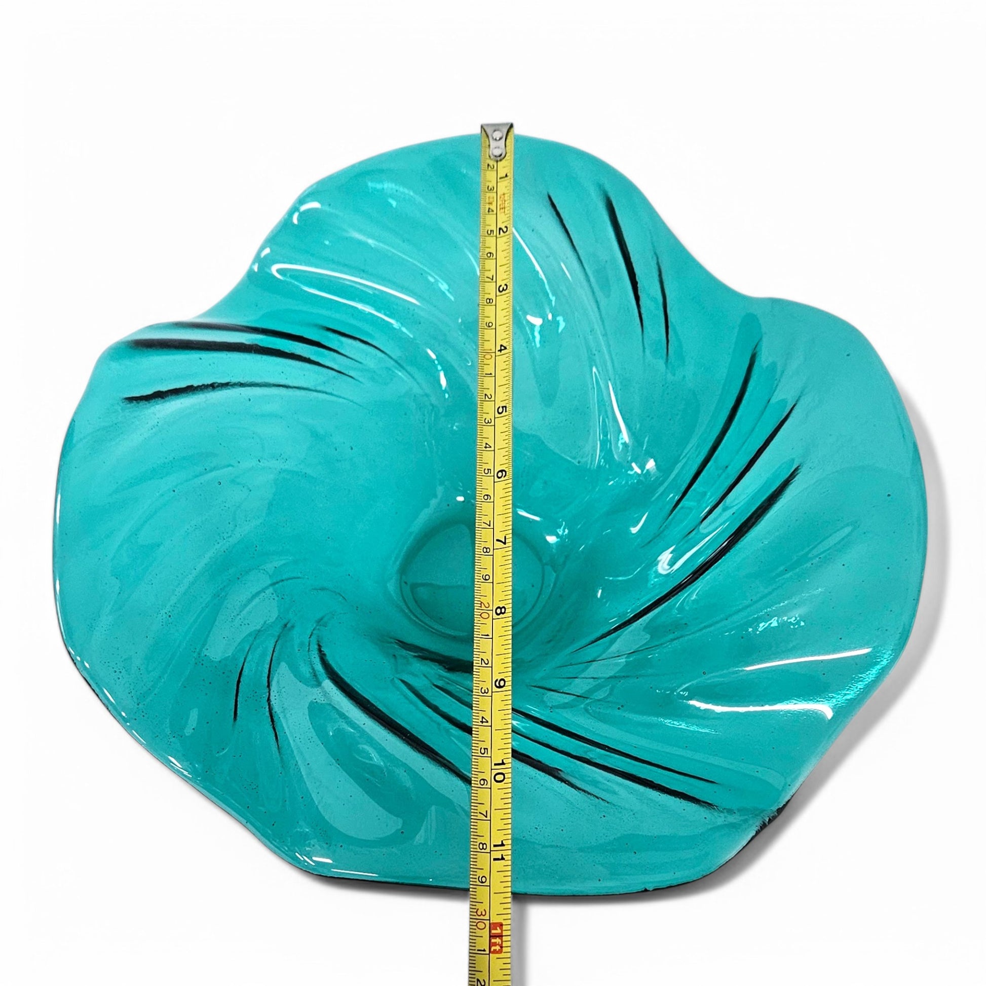 SIZE: 11.5" at widest point. 4" at highest point - Note: Glass tends to pull during the melting process. All sizes are approximate to within 1/4" more or less, of listed dimensions.