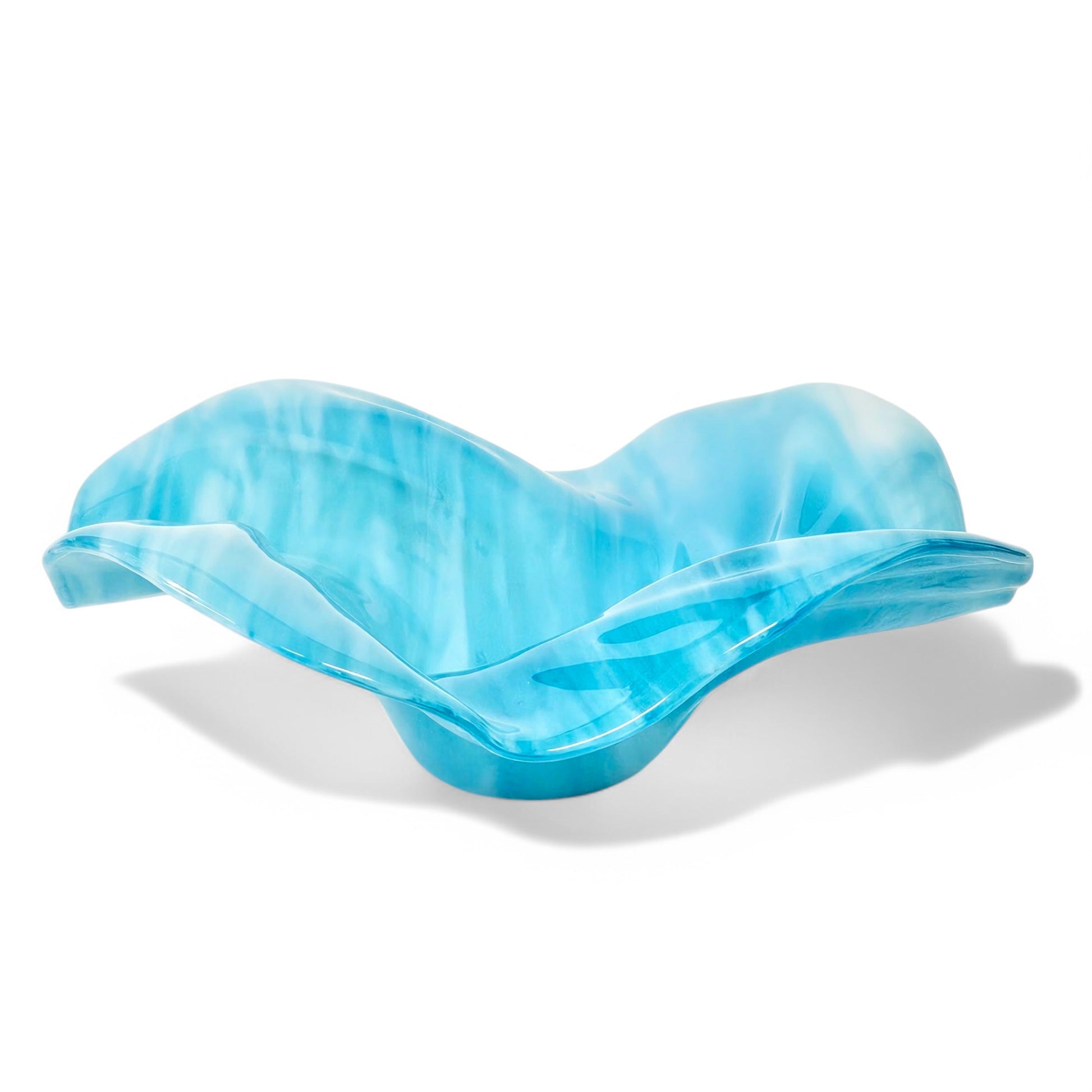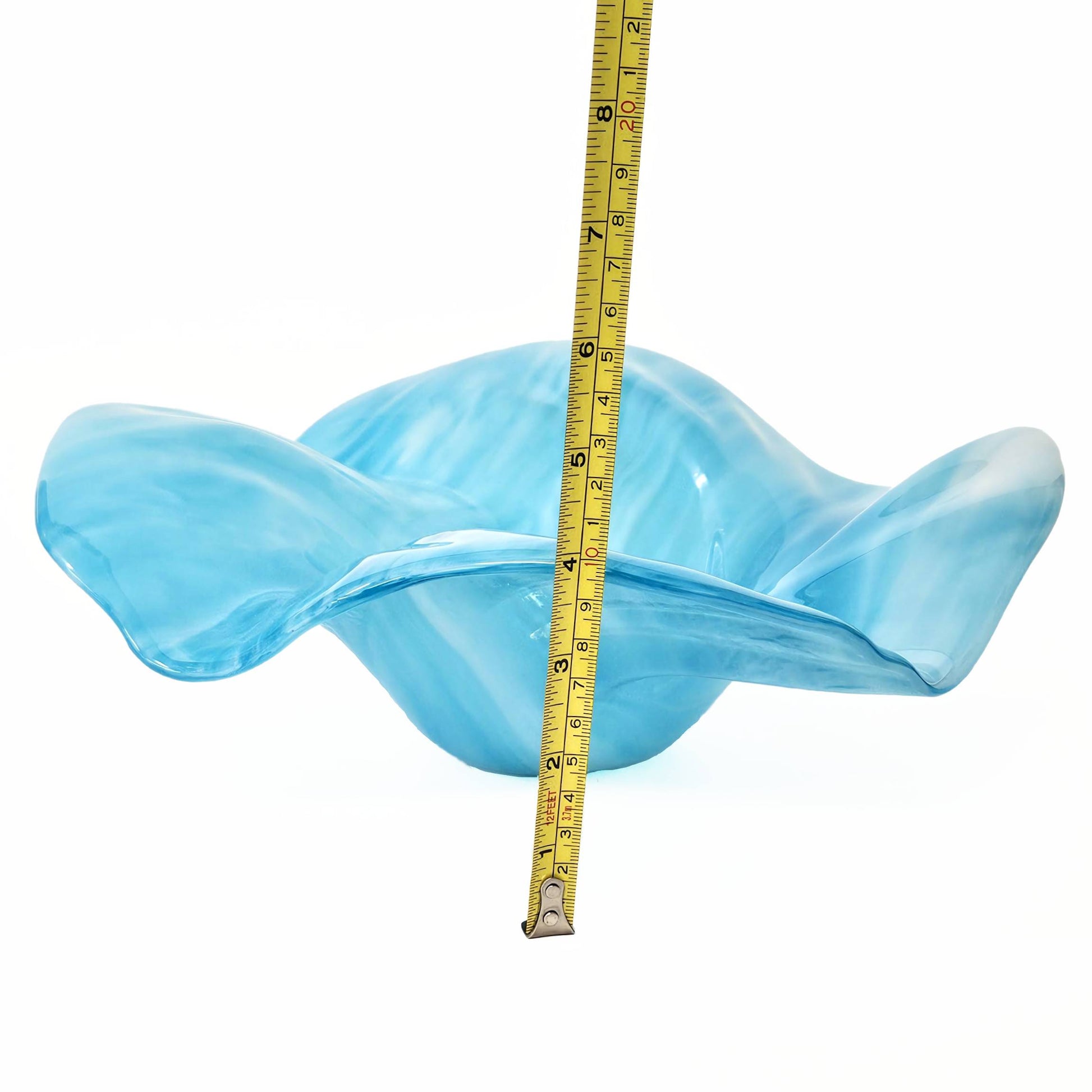Light Turquoise Blue Glass Art Wave Bowl | Modern Blue Decorative Bowls