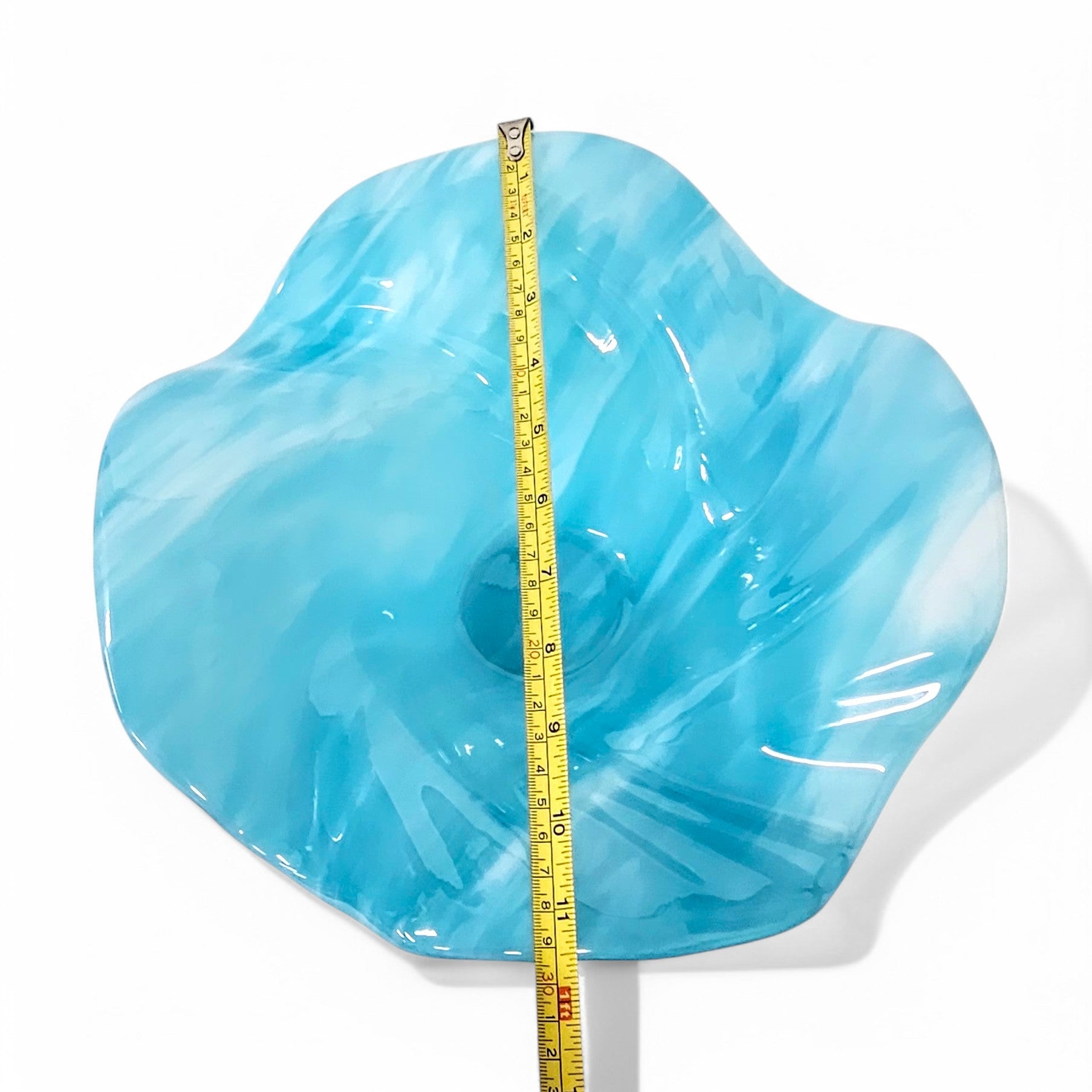 SIZE: 11.5" at widest point. 4" at highest point - Note: Glass tends to pull during the melting process. All sizes are approximate to within 1/4" more or less, of listed dimensions.