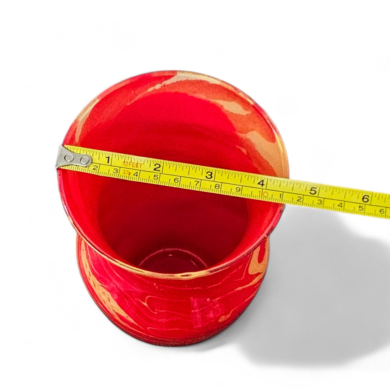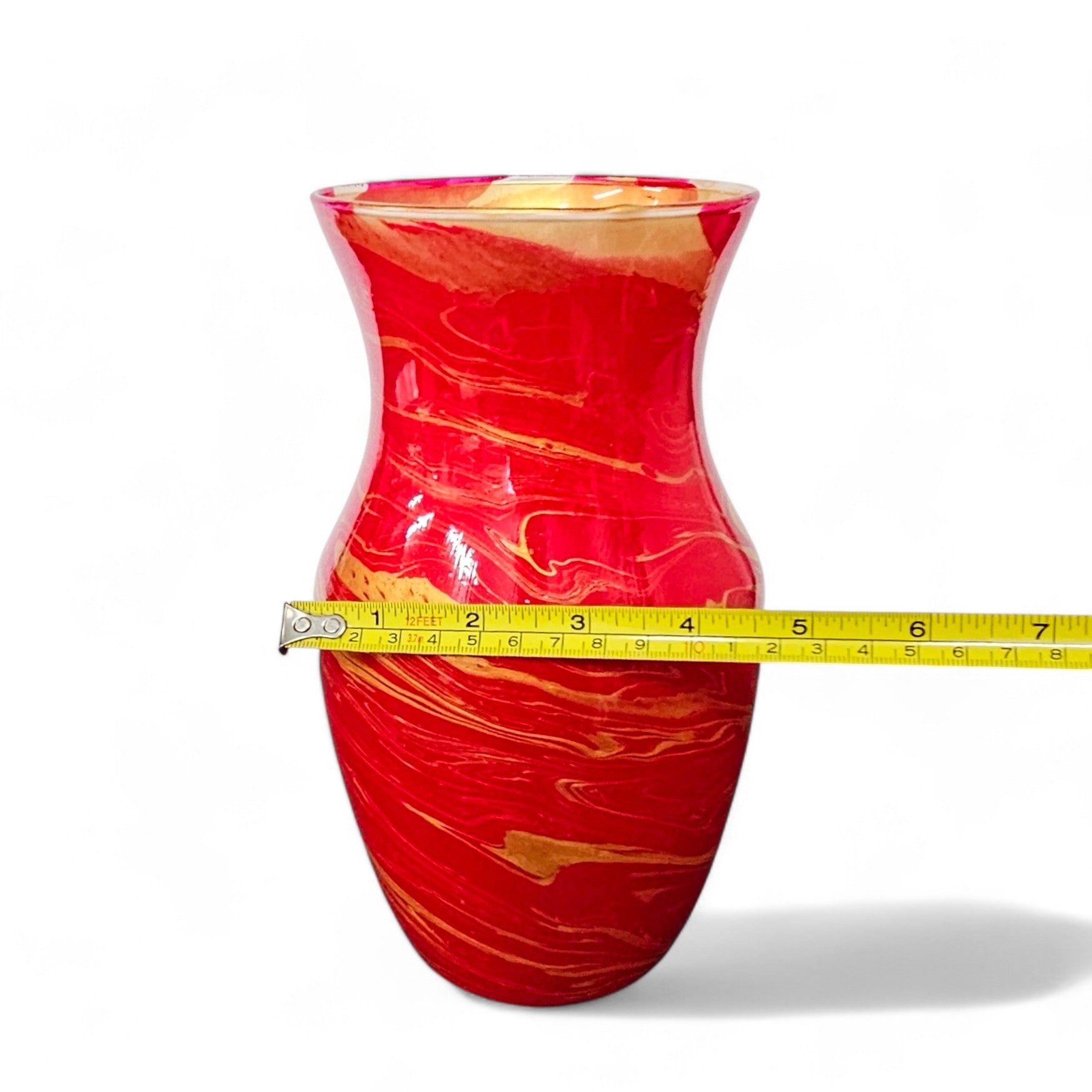 Painted Glass Vase in Red and Gold | Fluid Art Flower Vase